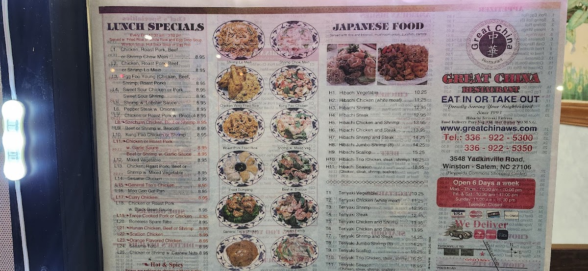 With great food and warm service, Great China Winston-Salem is a go-to locale for delicious Chinese takeout!